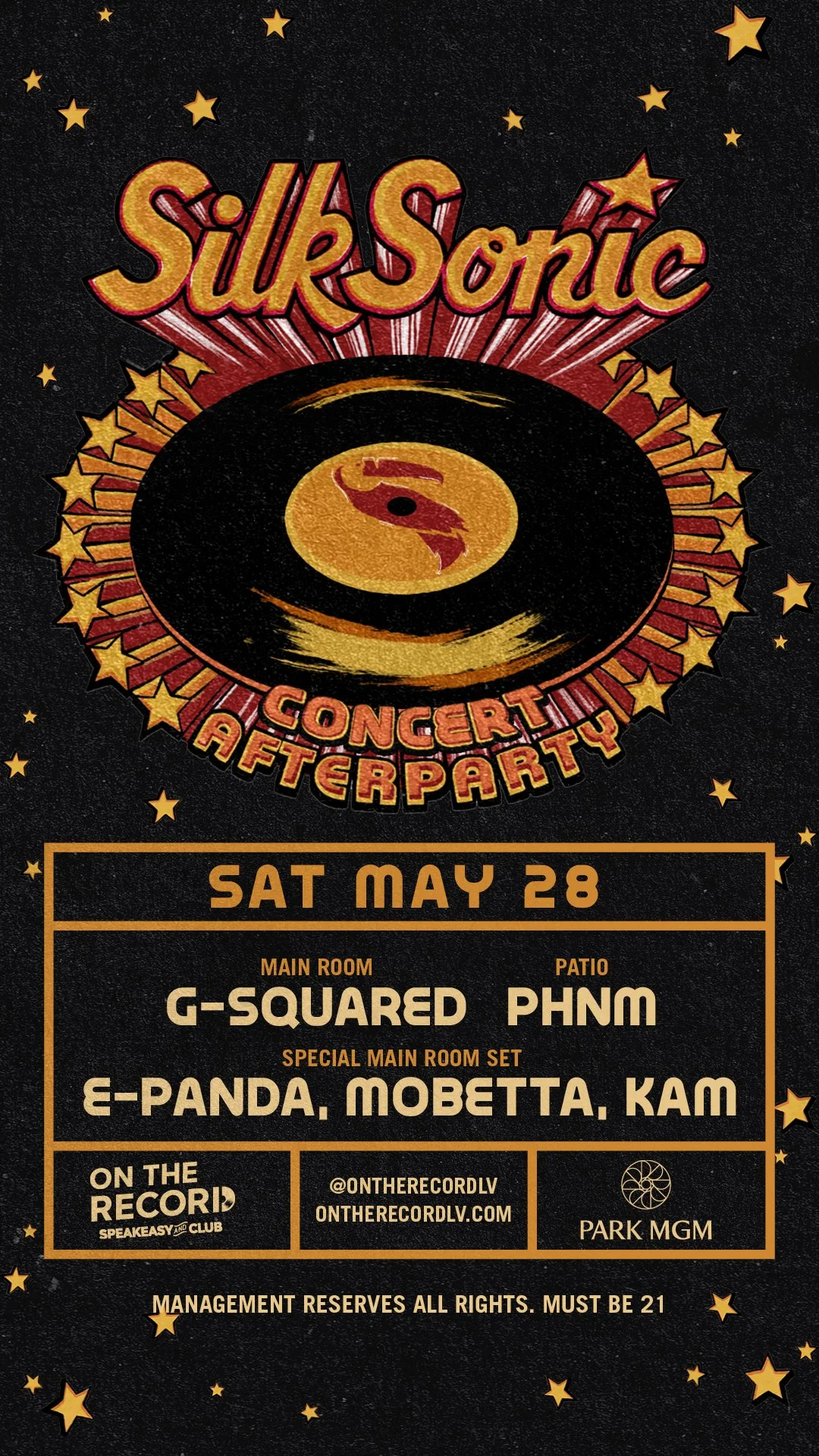 I had the pleasure of capturing the immersive experience of the concert after party for An Evening with Silk Sonic and Bruno Mars Live in Las Vegas. I managed promotional assets and strategy for 71 show dates that include Silk Sonic, Bruno Mars and The Hooligans. Additionally, I collaborated closely with Selvarey Rum to develop the F&B partnership.